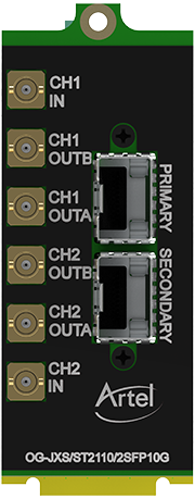 The Artel SMART openGear ST2110 <-> SDI, Media over IP Delivery Platform is a two channel 12G/6G/3G/HD-SDI over IP transport gateway employing JPEG-XS (TR-08) compression. JPEG-XS compression achieves 20x bandwidth efficiency over IP without introducing any noticeable loss of quality. The low latency and optimized bandwidth utilization makes 4K and HD video transmission more efficient which means lower costs for broadcasters.